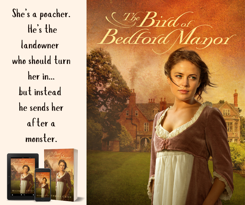 And guess who’s one of those authors? You got it! Little ol’ me, Michelle Griep. I write all things romantic, historic, and with plenty of action, mostly focusing on the Regency and Victorian eras. I always serve my stories with plenty of intrigue, and my newest release—The Bird of Bedford Manor—is no different. Here’s what it’s about: